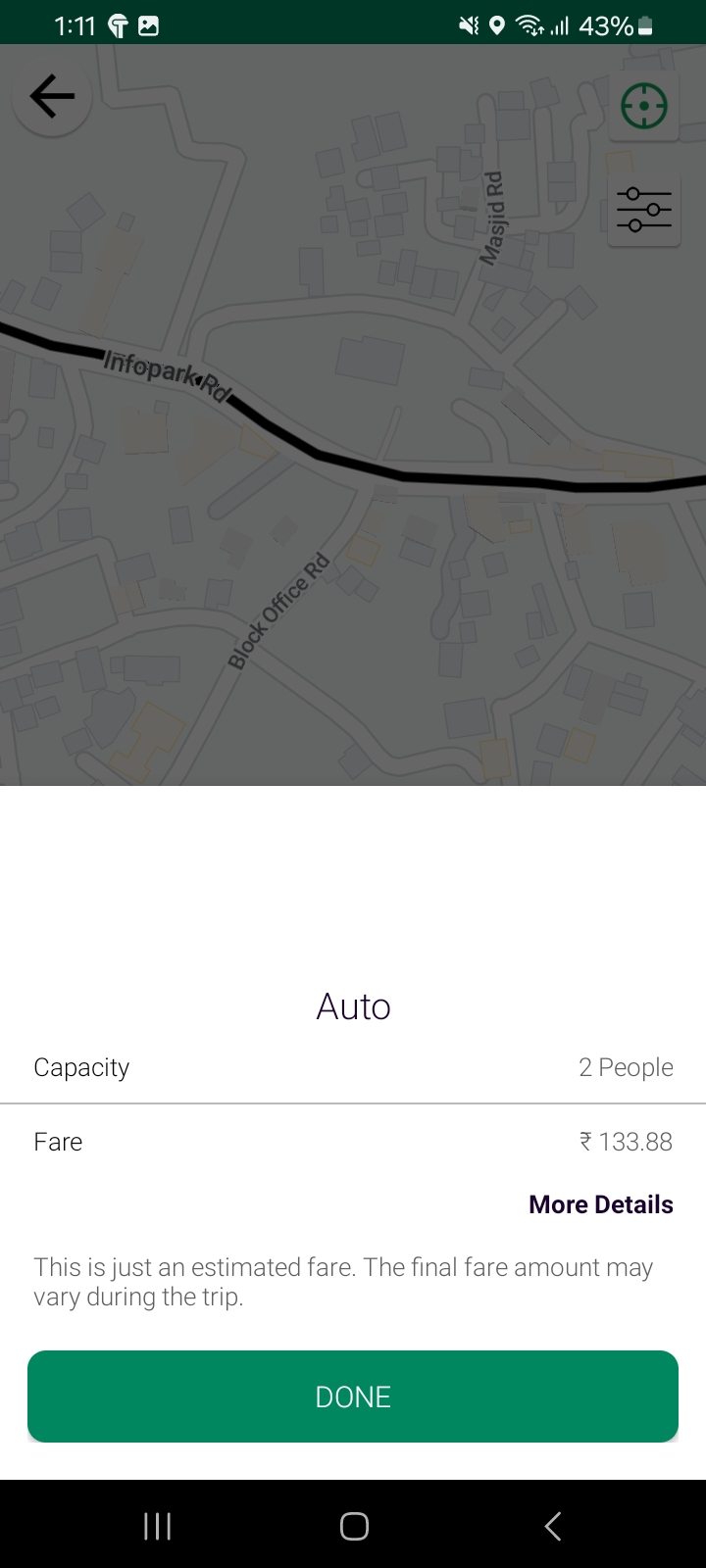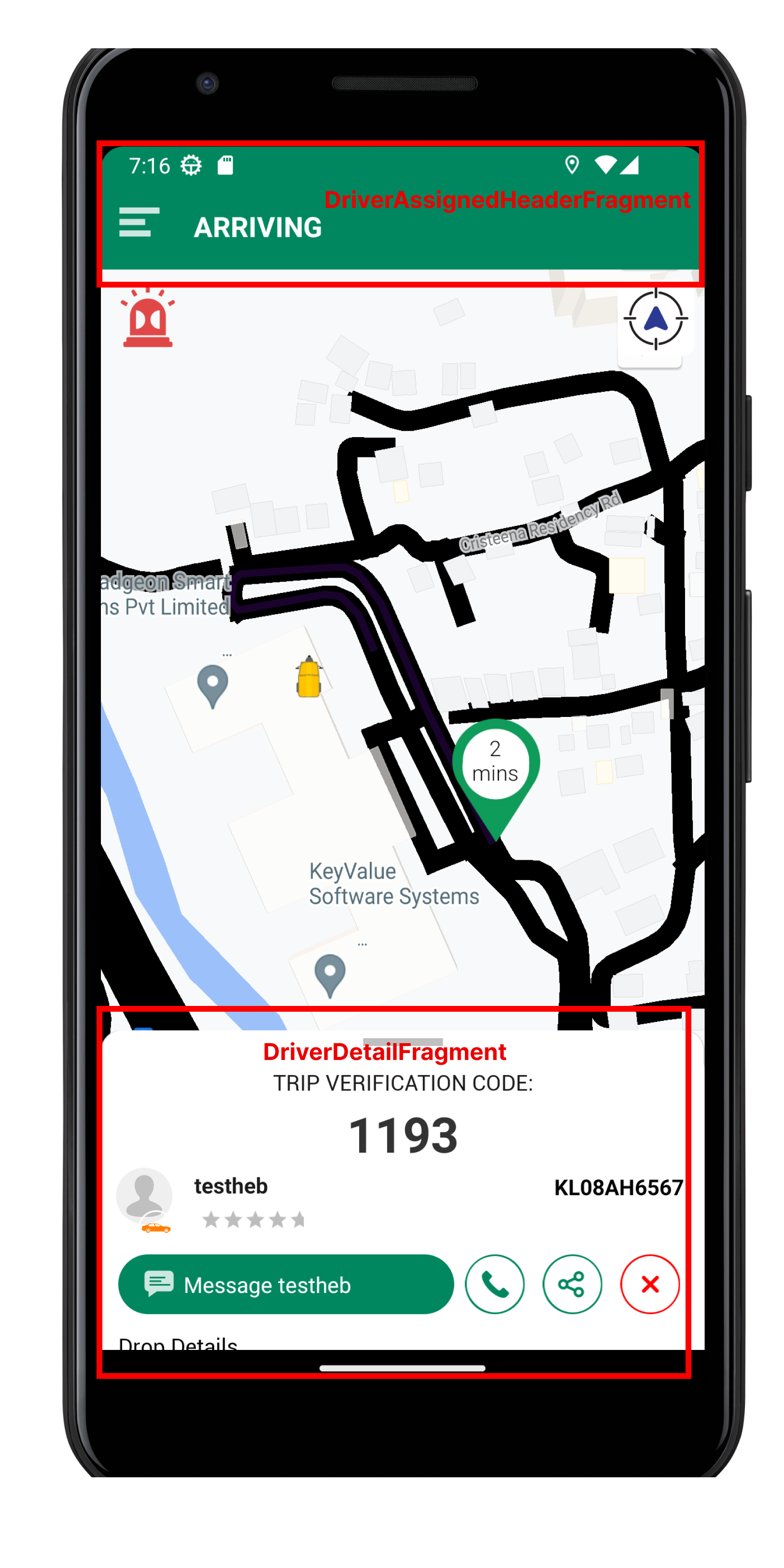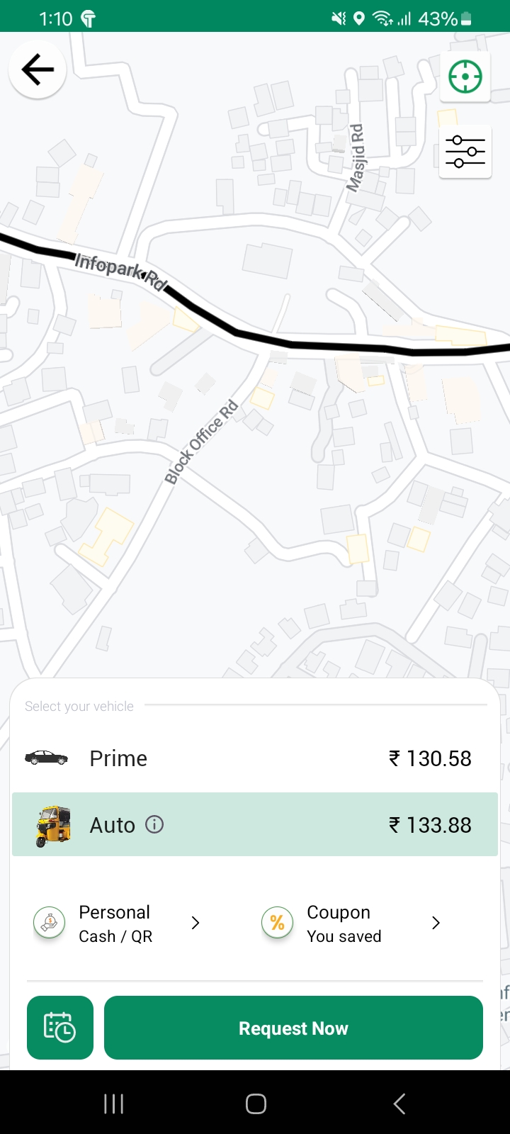 2. In the trip request popup, the pick-up location showing as "Kochi, Kerala " if we chose current location as pick-up.