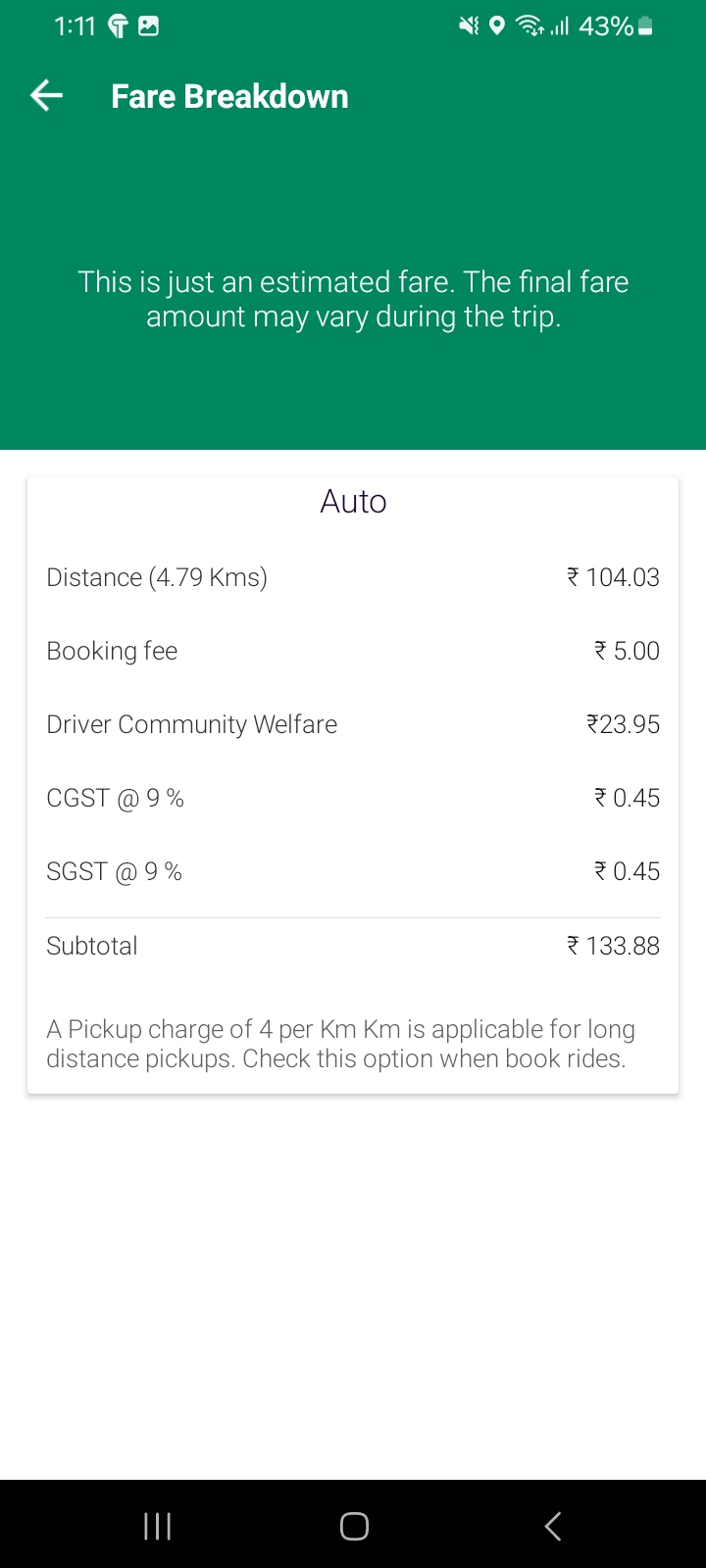 3. The pickup distance showing in the driver app is not correct. it always shows 1.5 km as pickup.