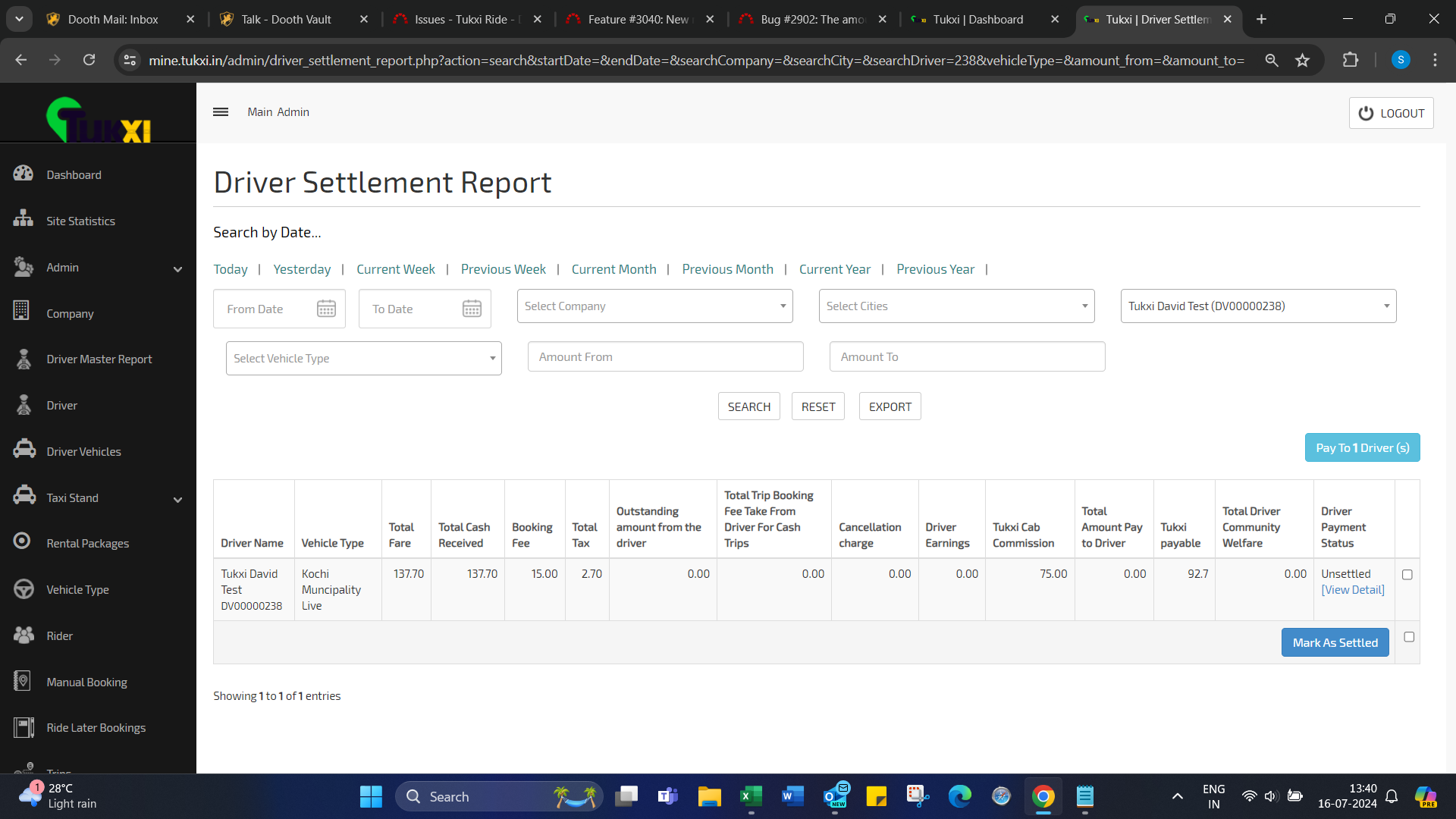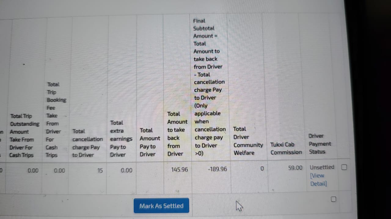 The amount showing in the settle pop-up and the report is not the same. also, the driver is not able to make the settlement properly, and the settle pop-up shows even after making the payment.