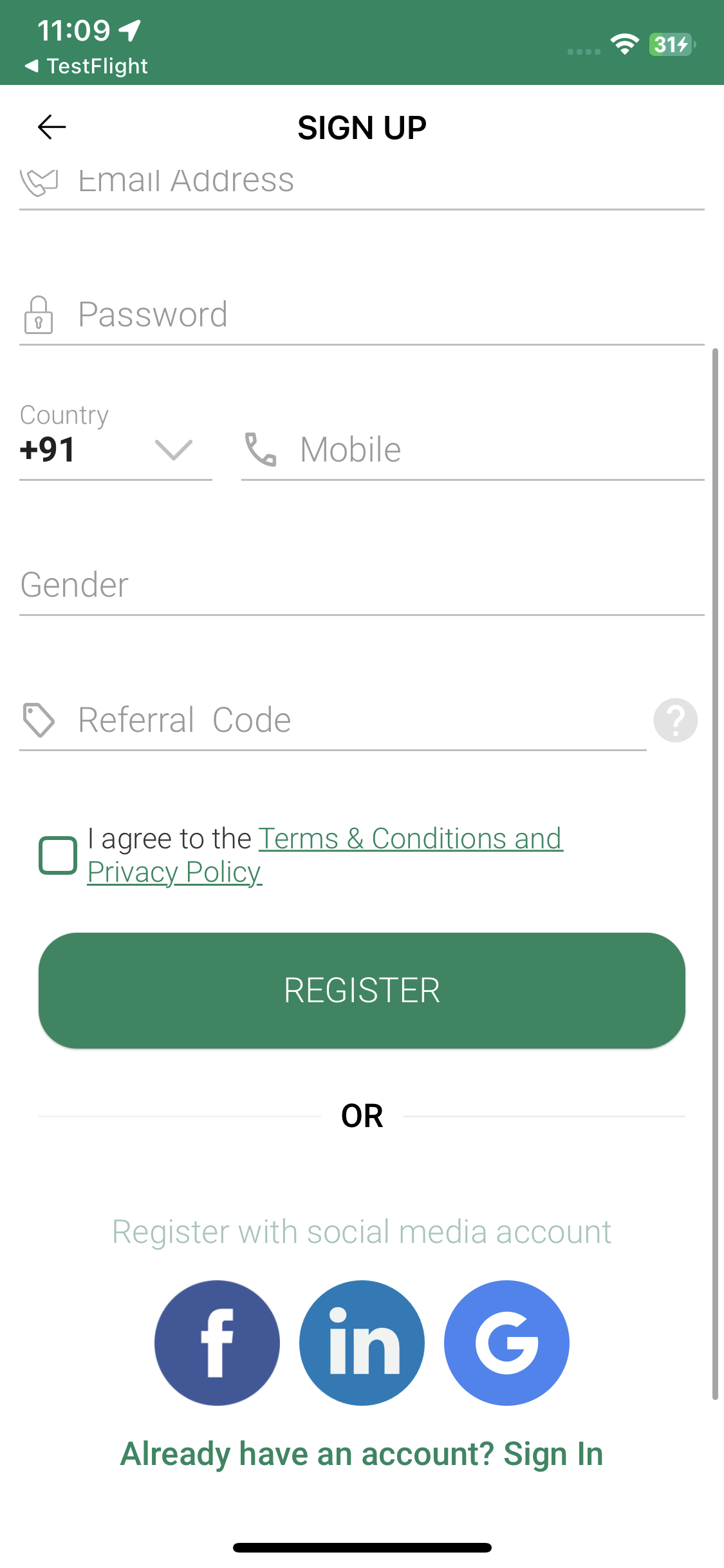 1. In Android it is register with social account but in iOS in place of register it is log in. - Don't want to change the text as per discussion with Jithin Feedback