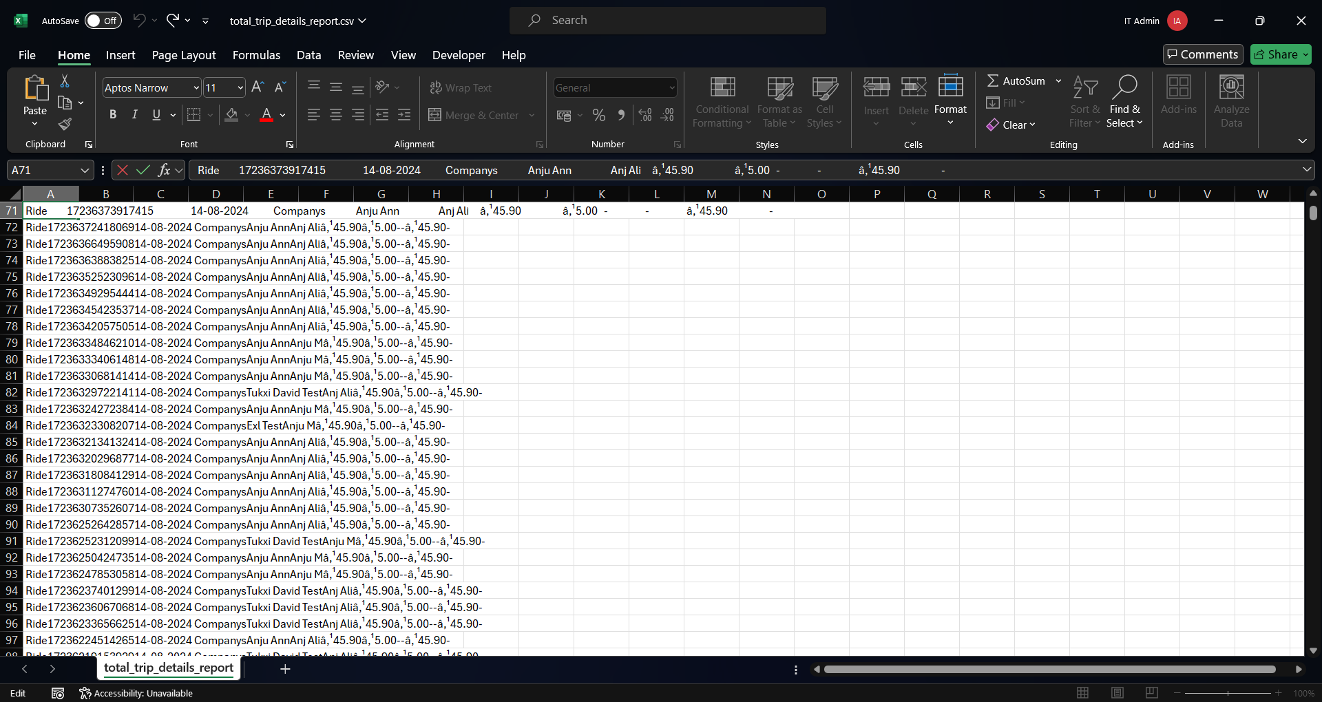3. The "Cash PaymentCard Payment" Title is for two columns in the report but the exported file it is showing in a single coulmn