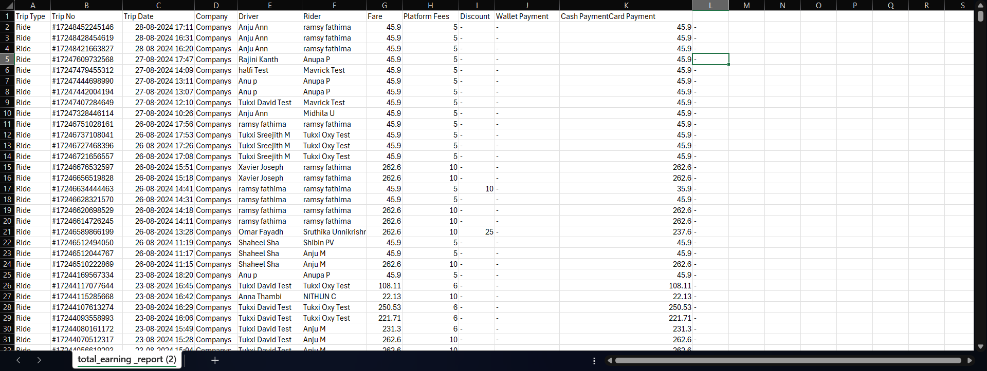 3. The "Cash PaymentCard Payment" Title is for two columns in the report but the exported file it is showing in a single column - fixed