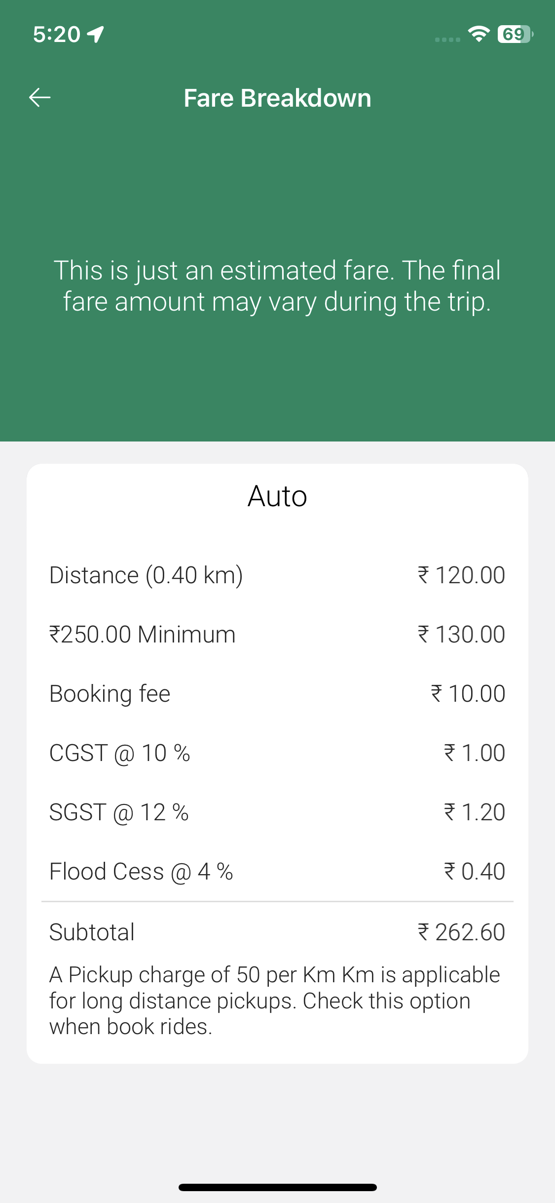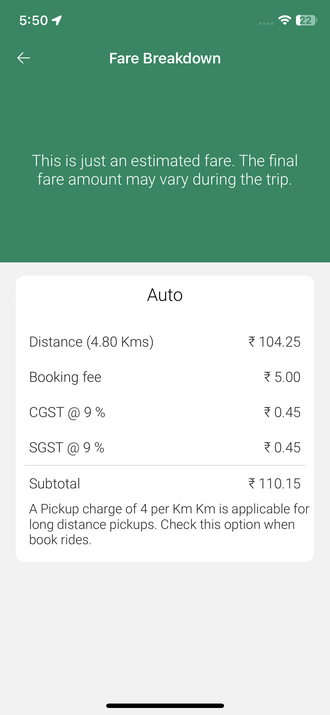 The trip amount mismatch in the rider app