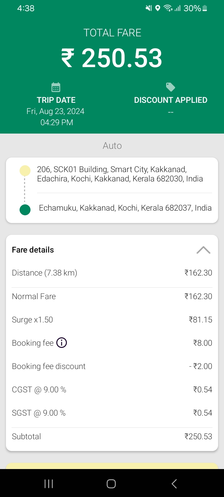 3. Check the fare details showing in the rider app.