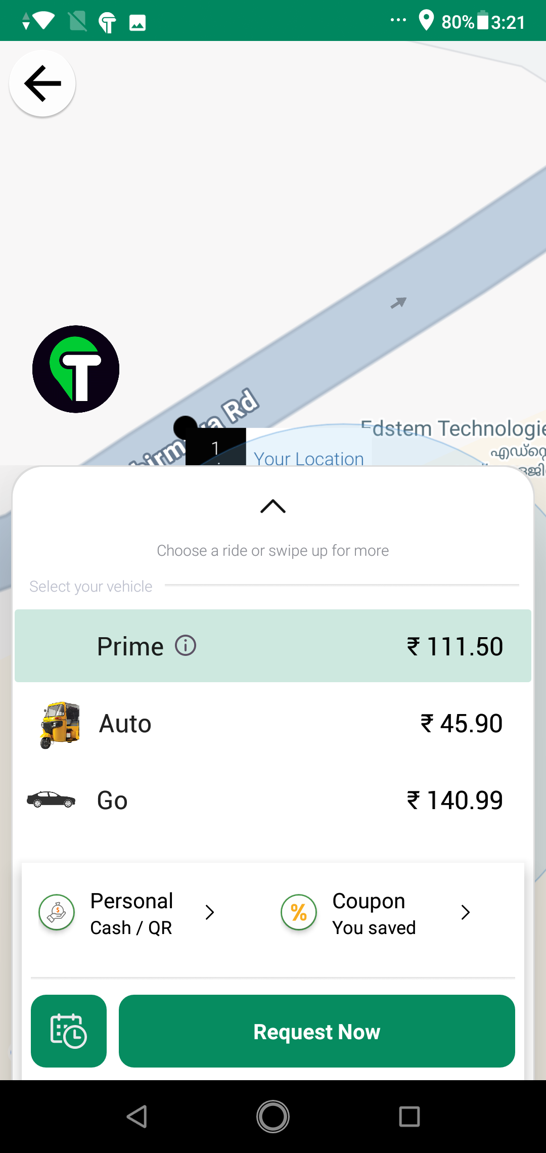 Select the location from recent location, try to make the trip: - Both the prime and Auto are available.