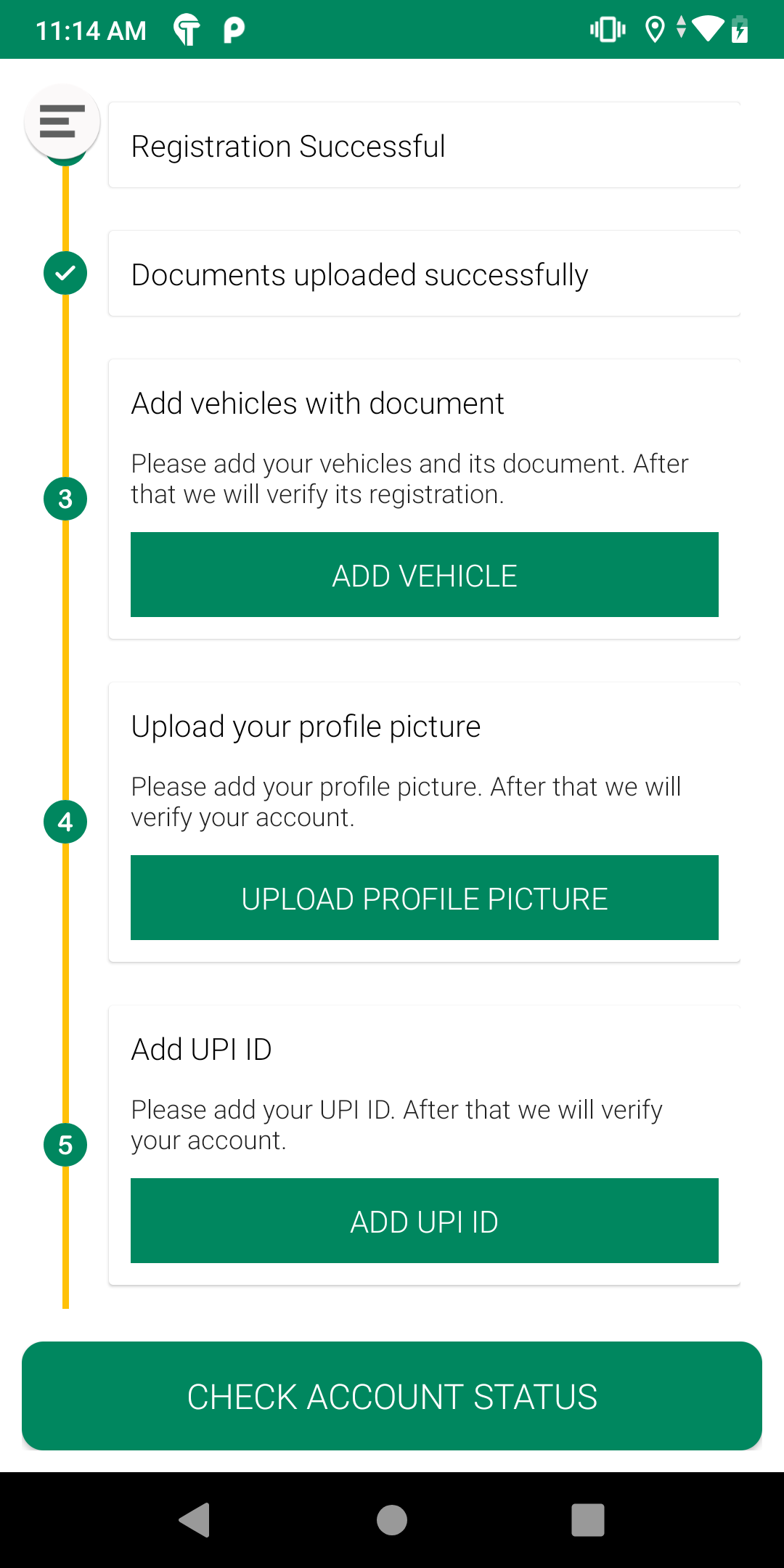 Not able to upload the document after registering a new driver. Instead of the upload document button, the message "Document uploaded successfully" message is showing.